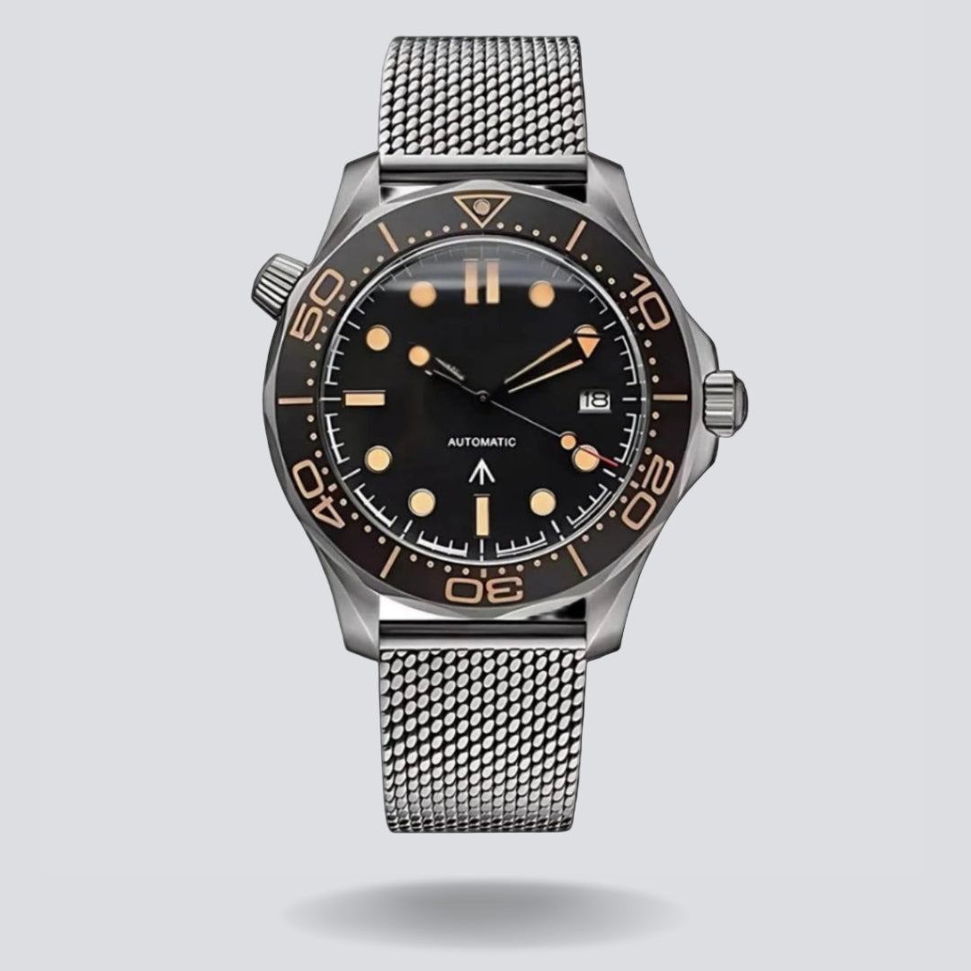 The Seikomaster Spectre 007 Edition born from cinematic legend and crafted with Japanese precision. Its NH35 automatic movement, sapphire crystal, and vintage mesh bracelet embody timeless sophistication and fearless character.
